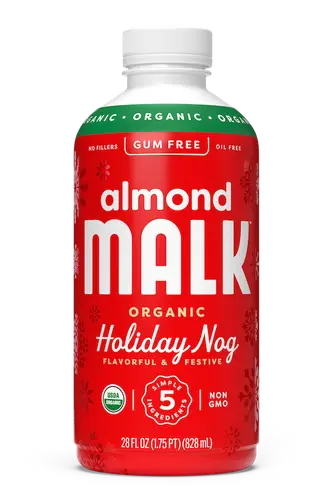 - Use a small mixing bowl to combine MALK Holiday Nog with ground flaxseed. Stir to combine and set aside for 10 minutes to thicken.